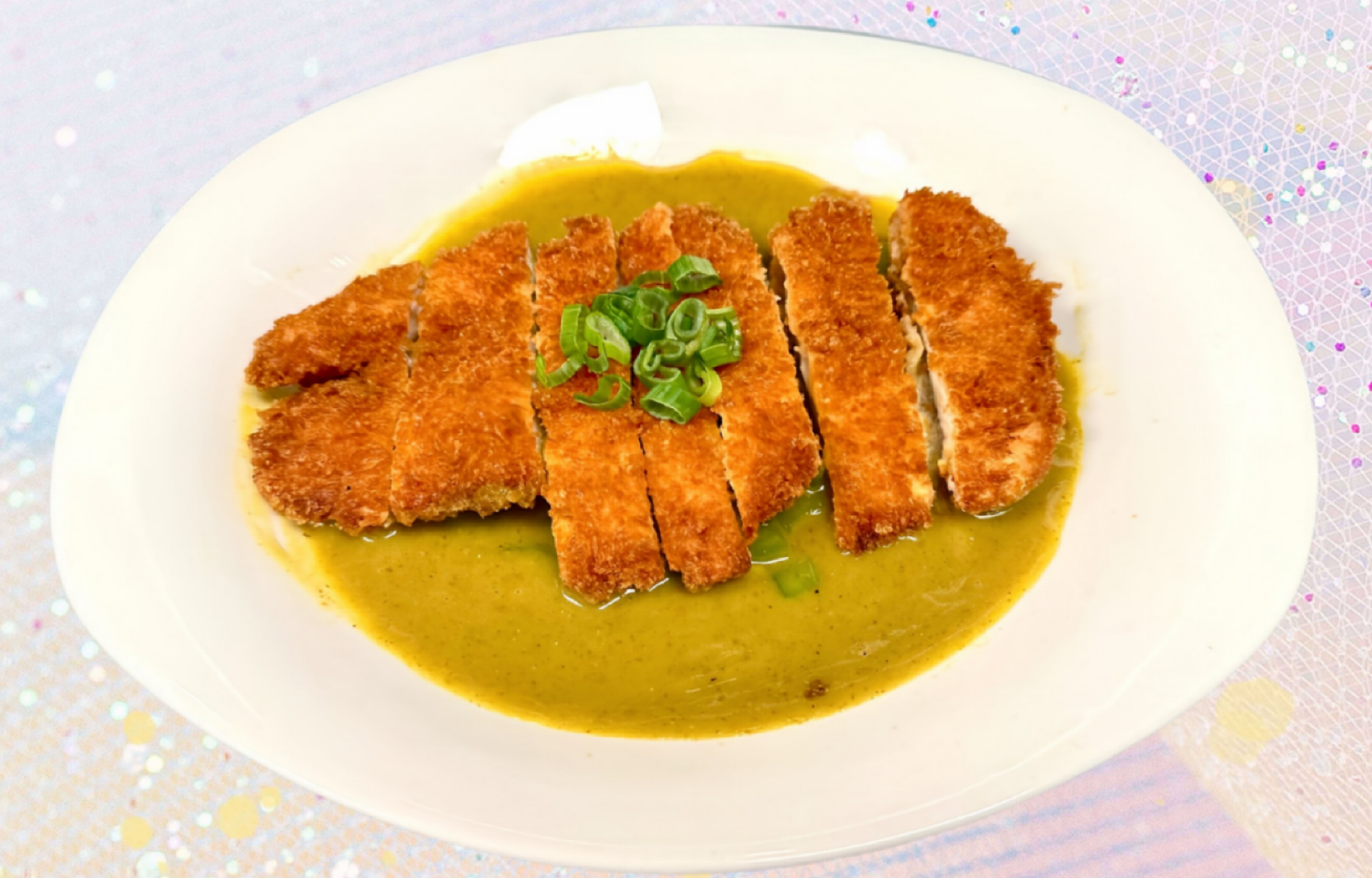Crispy breaded chicken cutlet served with rich Japanese curry sauce made
