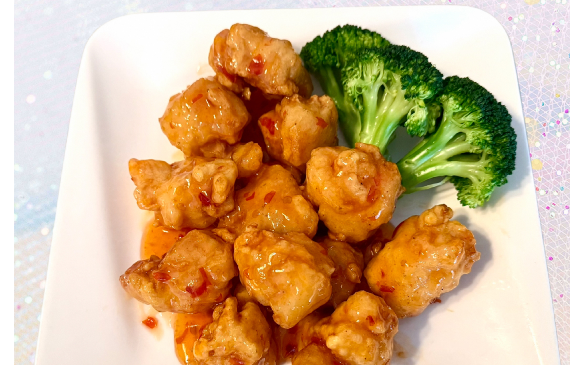 Crispy battered chicken tossed in a sweet and